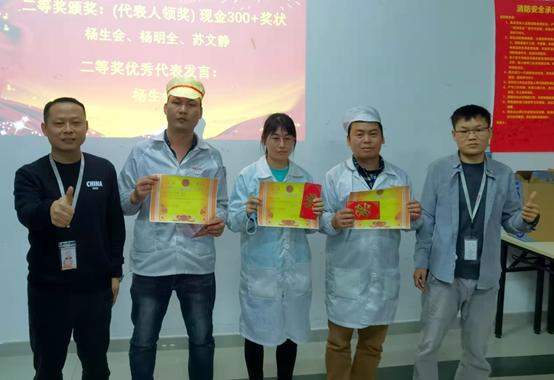 10月份,共收到員工提出153項(xiàng)提案,包括效率、成本、安全、品質(zhì)等各方面的改善,經(jīng)各評(píng)審小組審核評(píng)選出前三的獲獎(jiǎng)團(tuán)隊(duì)。由公司領(lǐng)導(dǎo)為獲獎(jiǎng)員工頒發(fā)獎(jiǎng)金及證書。