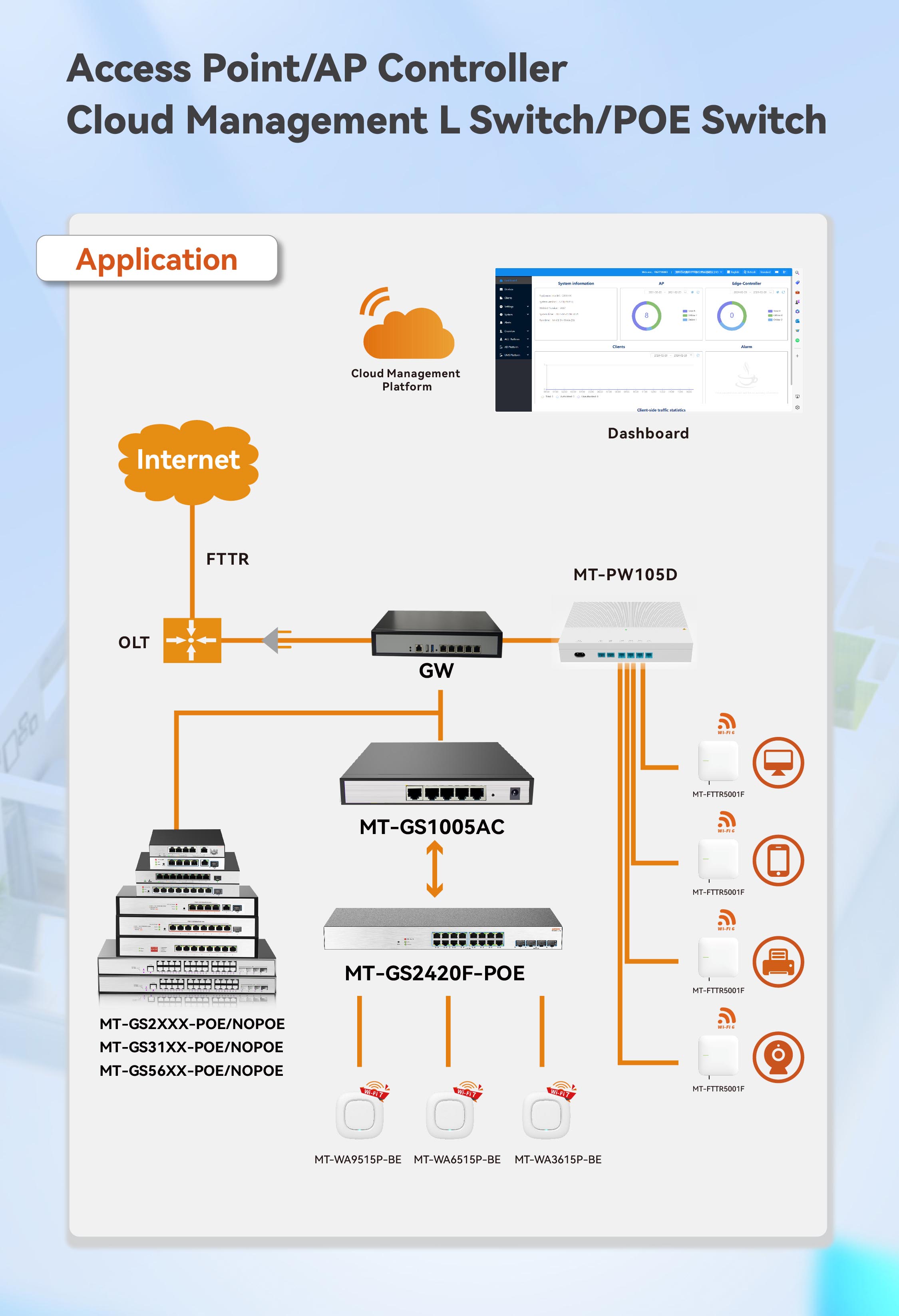 具備高性能的數(shù)據(jù)交換能力,支持多端口連接,能有效提升網(wǎng)絡(luò)的傳輸效率和穩(wěn)定性;支持云管理平臺,實現(xiàn)對設(shè)備的遠(yuǎn)程監(jiān)控、配置管理、故障診斷和軟件升級,大大提高了管理效率。