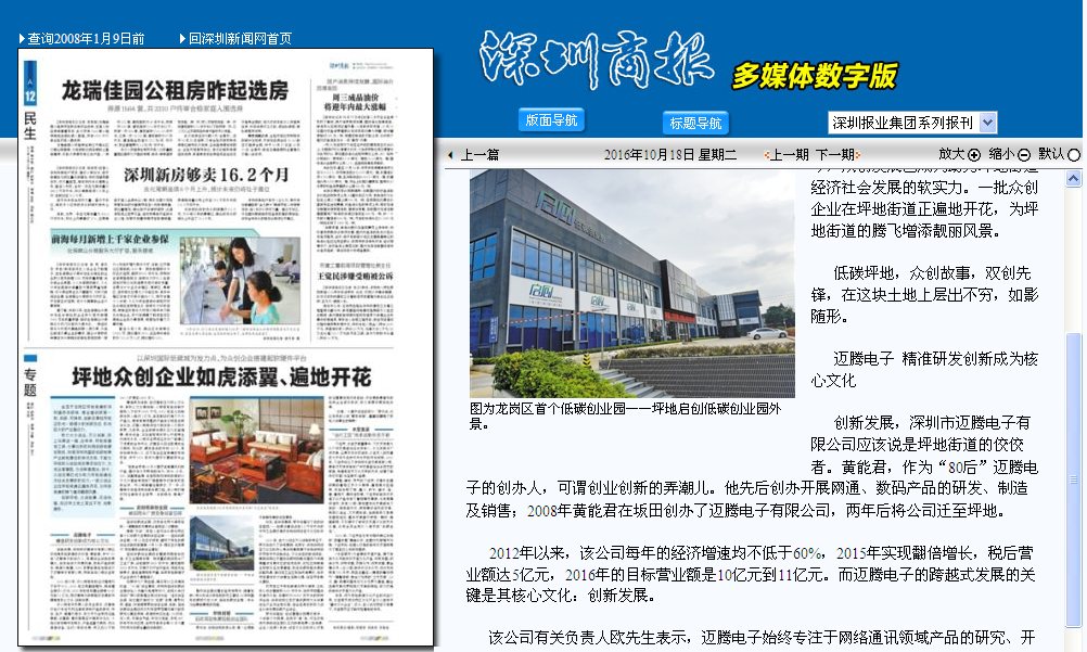 創(chuàng)新發(fā)展,深圳市邁騰電子有限公司應該說是坪地街道的佼佼者。黃能君,作為“80后”邁騰電子的創(chuàng)辦人,可謂創(chuàng)業(yè)創(chuàng)新的弄潮兒。他先后創(chuàng)辦開展網(wǎng)通、數(shù)碼產(chǎn)品的研發(fā)、制造及銷售;2008年黃能君在坂田創(chuàng)辦了邁騰電子有限公司,兩年后將公司遷至坪地。