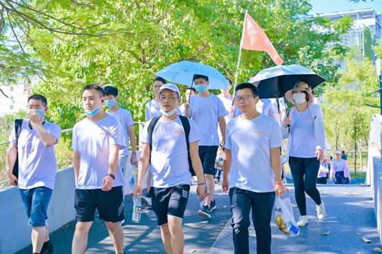 時(shí)間流逝,轉(zhuǎn)眼已近晌午,隊(duì)伍距離終點(diǎn)目標(biāo)越來(lái)越近,最終,團(tuán)隊(duì)歷時(shí)4個(gè)小時(shí),行程共計(jì)21.9公里,150名隊(duì)員無(wú)一人落下,全部抵達(dá)終點(diǎn)。