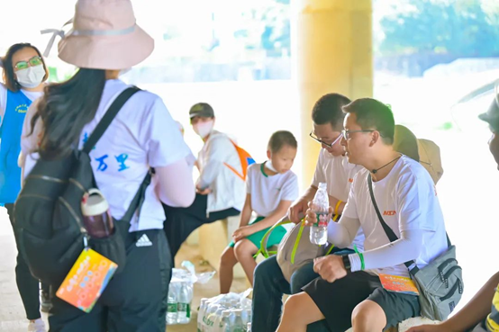 隨著行程的推進(jìn),大家體力已消耗過(guò)半,持續(xù)的行走讓大家的腿已開始發(fā)抖,有些小伙伴行進(jìn)的速度也有了明顯下降,但大家仍然步履不停,在簽到點(diǎn)互相分享食物與水、攙扶起體力較弱的同事,徑直向目的地行進(jìn)。