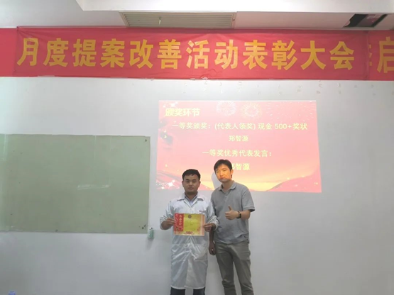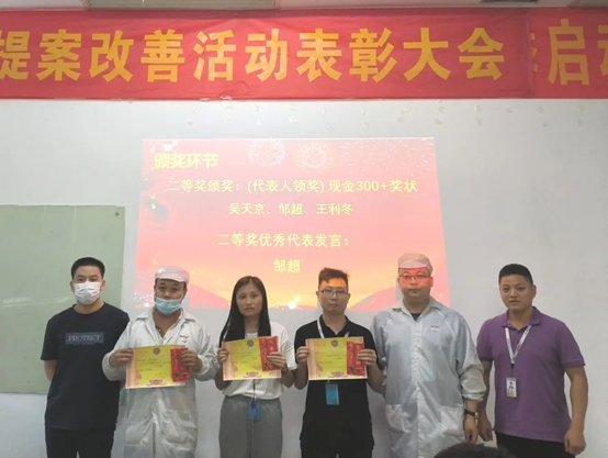 為表彰員工對公司發(fā)展提出優(yōu)秀提案,同時為充分調動員工主觀能動性,把提案改善作為持之以恒的工作來推進,讓更多的員工能夠參與進來,2022年6月21日,華南工廠召開了五月提案改善表彰大會。公司對本次提案獲得者頒發(fā)了榮譽證書和獎金。