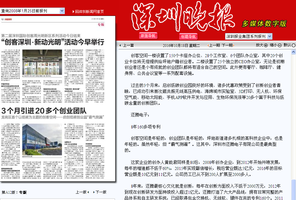 創(chuàng)新發(fā)展,深圳市邁騰電子有限公司應該說是坪地街道的佼佼者。黃能君,作為“80后”邁騰電子的創(chuàng)辦人,可謂創(chuàng)業(yè)創(chuàng)新的弄潮兒。他先后創(chuàng)辦開展網(wǎng)通、數(shù)碼產(chǎn)品的研發(fā)、制造及銷售;2008年黃能君在坂田創(chuàng)辦了邁騰電子有限公司,兩年后將公司遷至坪地。
