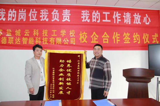 為實(shí)行工學(xué)一體的人才培養(yǎng)模式,校企雙方約定,自2022年秋季學(xué)期開始,企業(yè)在學(xué)校設(shè)立“江蘇德聯(lián)達(dá)智能科技有限公司冠名班”,校企雙方共同制定人才培養(yǎng)方案,共同編制課程計(jì)劃,企業(yè)選拔優(yōu)秀技術(shù)人員參與學(xué)校的課程教學(xué),并優(yōu)先錄用冠名班的合格畢業(yè)生。學(xué)校委派德才兼?zhèn)涞慕處煘閷?shí)習(xí)生的帶隊(duì)老師,參加企業(yè)的生產(chǎn)實(shí)踐和管理,將企業(yè)作為畢業(yè)生就業(yè)的首選單位,為企業(yè)的發(fā)展提供人才方面的保證。